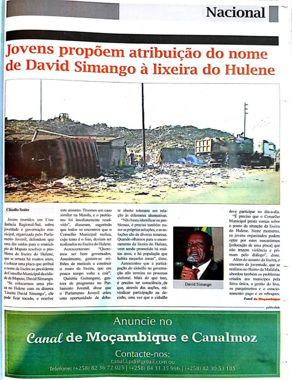 Jovens propõem atribuição do nome de David Simango à lixeira do Hulene. Imagem recolhida aqui.